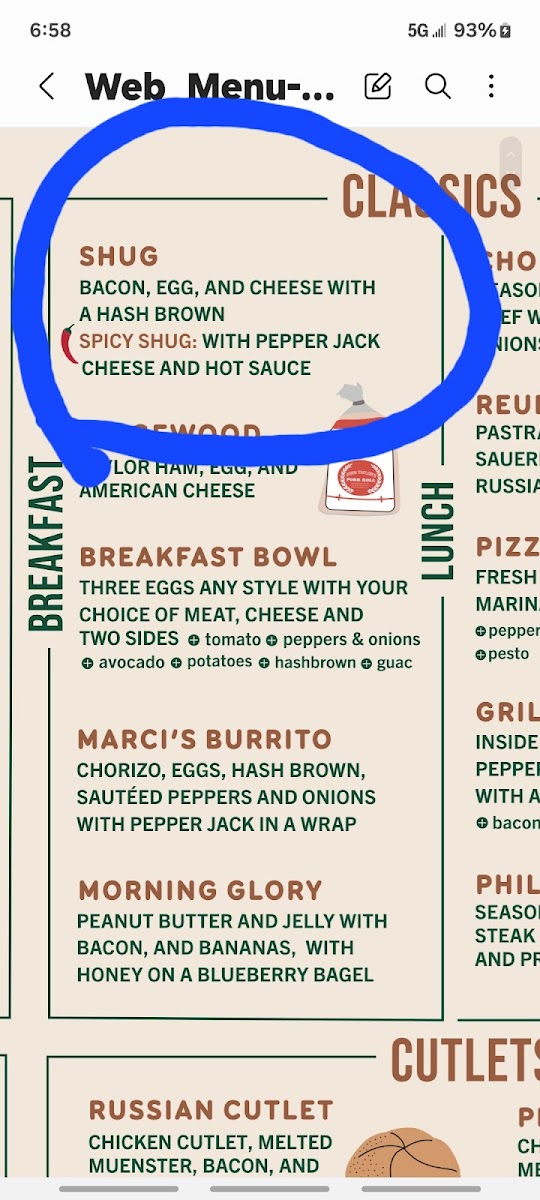 Shug’s Bagels offers a straightforward, comforting menu focused on fresh bagels and satisfying casual bites. Whether you’re stopping in for a quick breakfast or a simple lunch, the selection suits moments when you want hearty, familiar flavors paired with a relaxed atmosphere. The menu combines classic options like everything bagels with cream cheese alongside more robust choices such as the spicy Shug sandwich or a loaded hashbrown topped with creamy avocado and Mike’s hot honey.